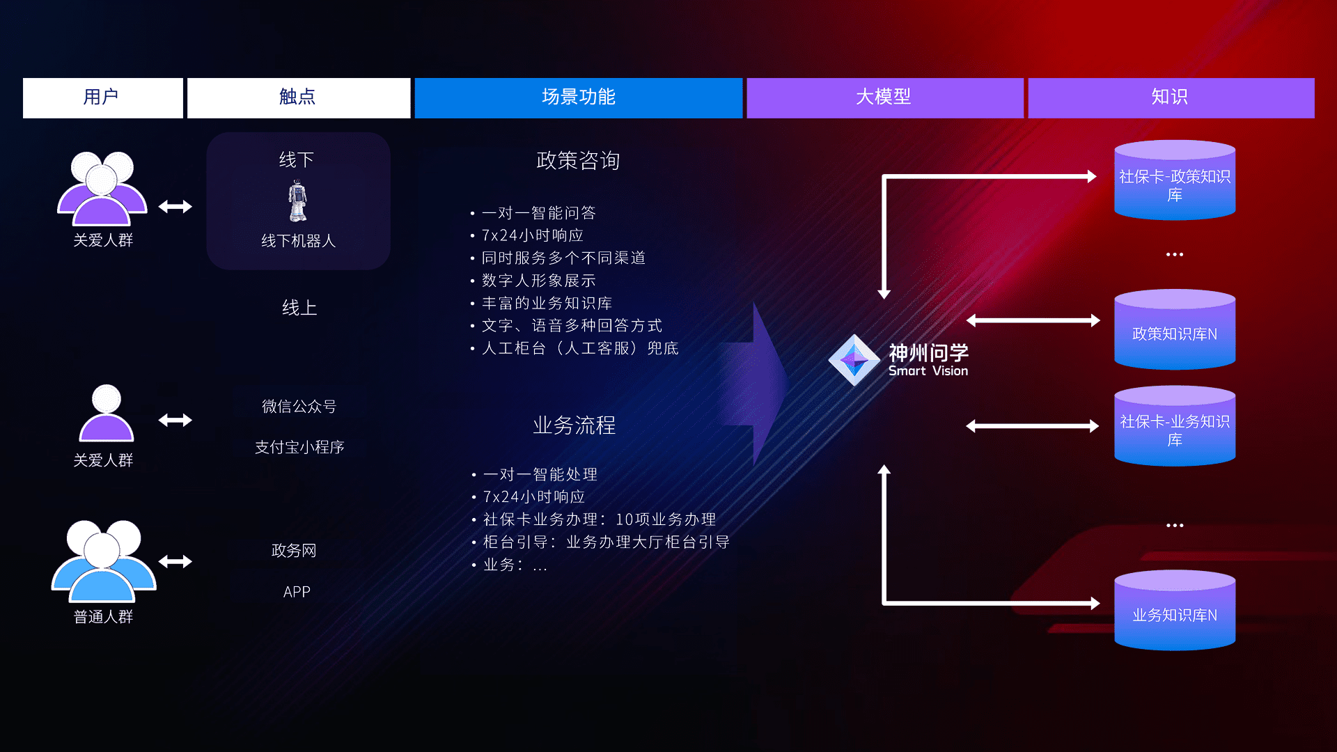 • 线上线下全覆盖:线上提供微信公众号、、支付宝小程序、、、政务网、、、、app多种渠道,,与线下机器人形成完整服务体系。。。